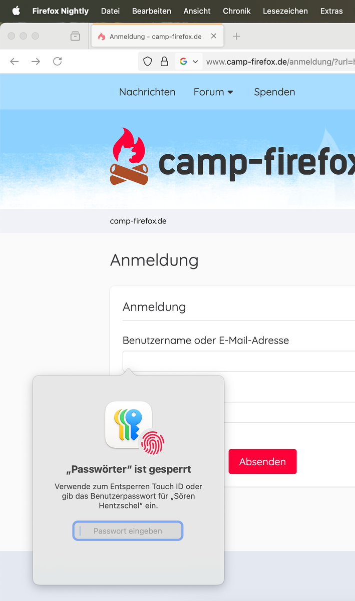 Ein Symbol im Eingabefeld wie in Safari gibt es in Firefox nicht. Das kann auch nicht automatisch durch macOS bereitgestellt werden, müsste also durch die Anwendung implementiert werden, falls überhaupt möglich. Ich weiß ehrlich gesagt nicht, ob macOS Sequoia eine API für Drittanbieter bereitstellt, um das zu tun. Chrome bietet diese Art der Integration Stand heute nämlich auch nicht an. Und in der Liste der Neuerungen von macOS Sequoia für Entwickler konnte ich zumindest nichts in diese Richtung herauslesen.