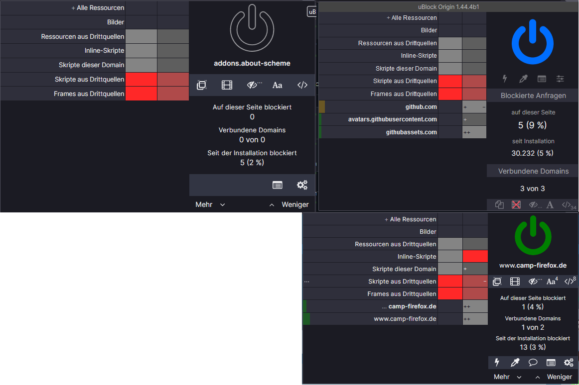 Gorhill hat ja die Option "allow" als direkten Klick im Dialog entfernt, vorher ist schon die alte Ansicht weggefallen. Stattdessen kann man strg strg drücken, wenn der Dialog (via Button) angezeigt wird, dann wird für diese eine Anzeige die grüne Fläche wieder freigeschaltet.