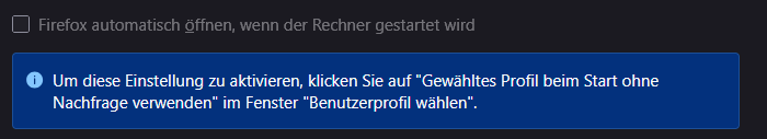 Alles anzeigen@-moz-document url-prefix(about:profiles), url-prefix(chrome://browser/content/browser.xhtml) { #owned button[id="create-button"] { background-color: green !important; } #profiles h3 { color: red !important; } #profiles h2 { color: #ff8f00 !important; } #profiles button[data-l10n-id="profiles-rename"], #profiles button[data-l10n-id="profiles-remove"], #profiles button[data-l10n-id="profiles-set-as-default"] { display: none !important; } #owned button[id="create-button"]:hover, #profiles button:enabled:hover { background-color: rgba(255, 227, 0, 0.5) !important; } } /*end of xhtml*/Da bei mir alles "dunkel" ist, sind das starke Farben, und ein paar Buttons sind weg, hab ich eh nicht gebraucht, ich hab eigentlich NIE welche auf der Seite genutzt bis auf "Öffnen"