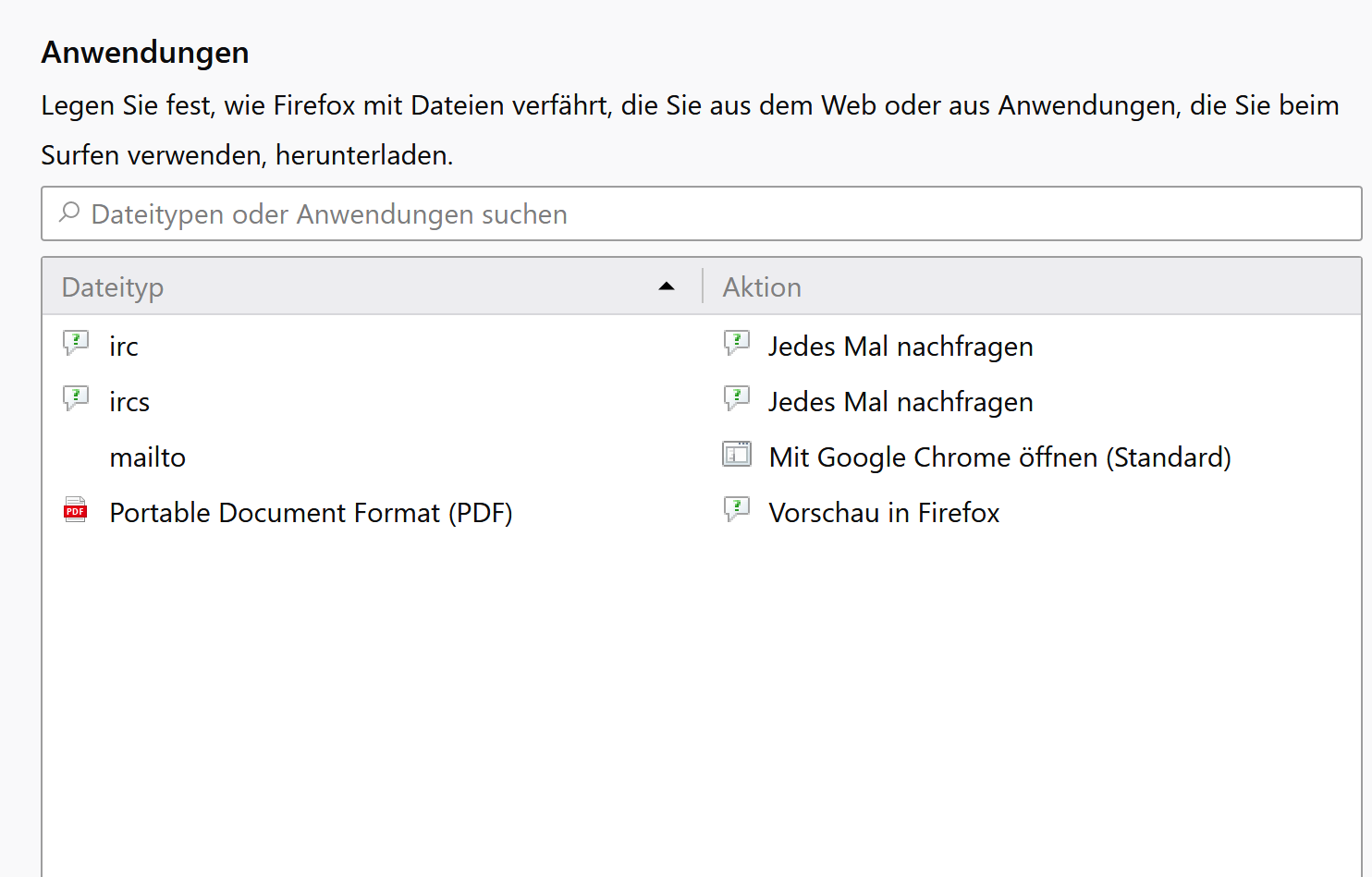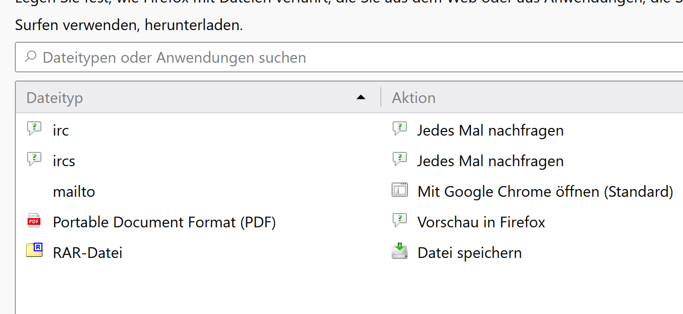 Direktdownload https://mozhelp.dynvpn.de/dateien/forum/Test.rar probiere mal damit, danach sollte .rar auch in deen Einstellungen --> Anwendungen auftauchen.