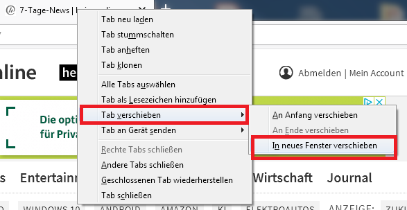 sehr gerne nutzte ich die Funktion "in neues Fenster verschieben" (Rechtsklick auf ein offenes Tab genügte).[attachment=1]firefoxalt.png[/attachment]
