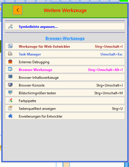 Seit einiger Zeit nervte es mich, dass es unter "Extra" Browser-Werkzeuge