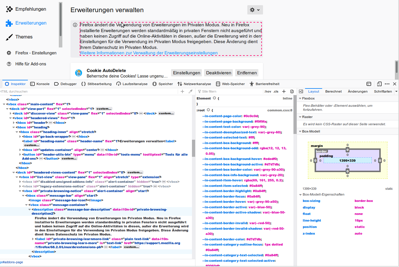 Firefox ändert die Verwendung von Erweiterungen im Privaten Modus...