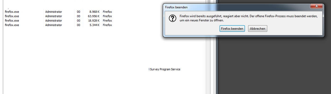 Und erneut lässt sich im TaskManager der Prozess firefox.exe nicht beenden.