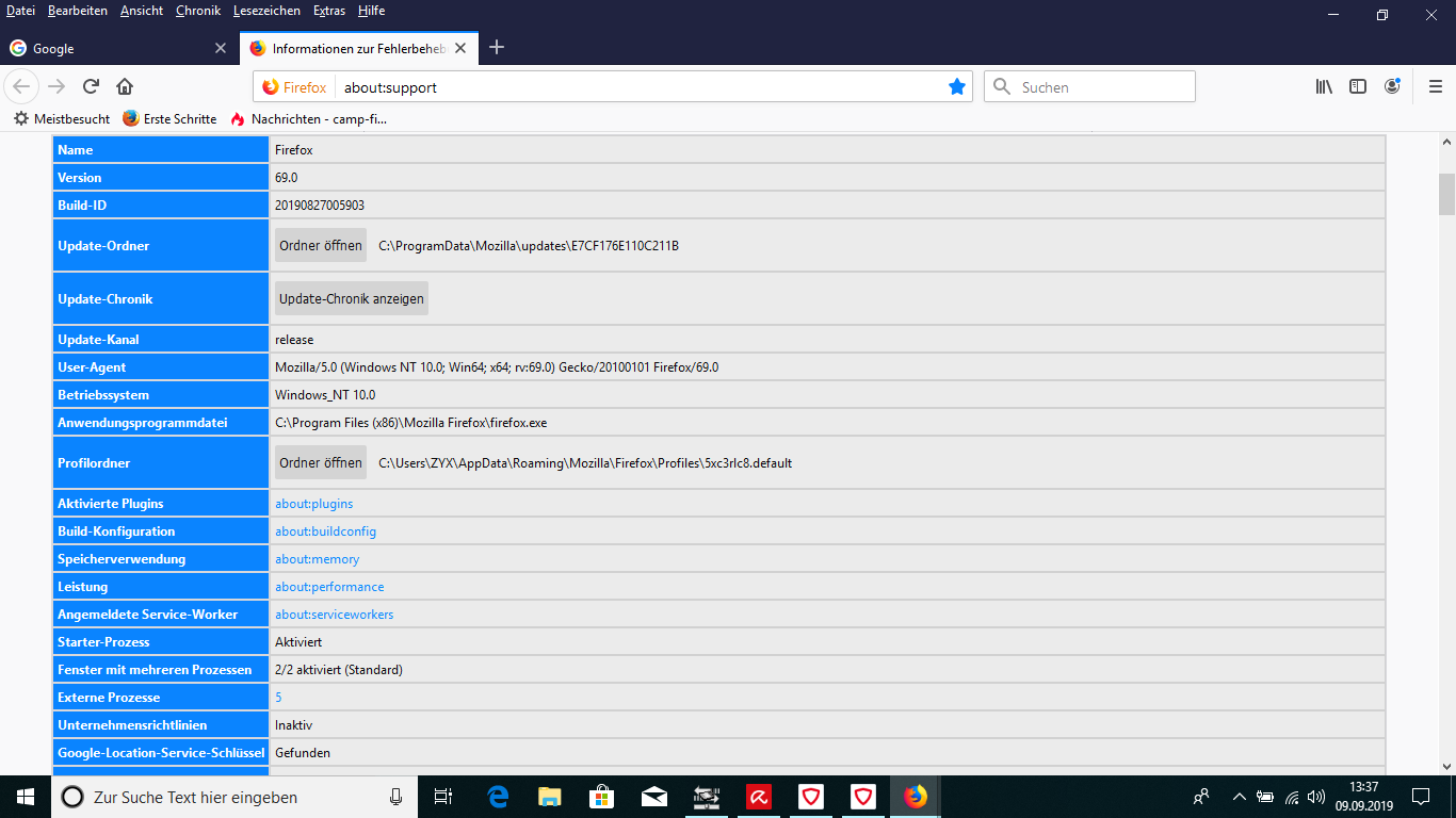 Auf dem Notebook meiner Frau ist Win10. Mit dem Update auf 69.0 das gleiche Problem.