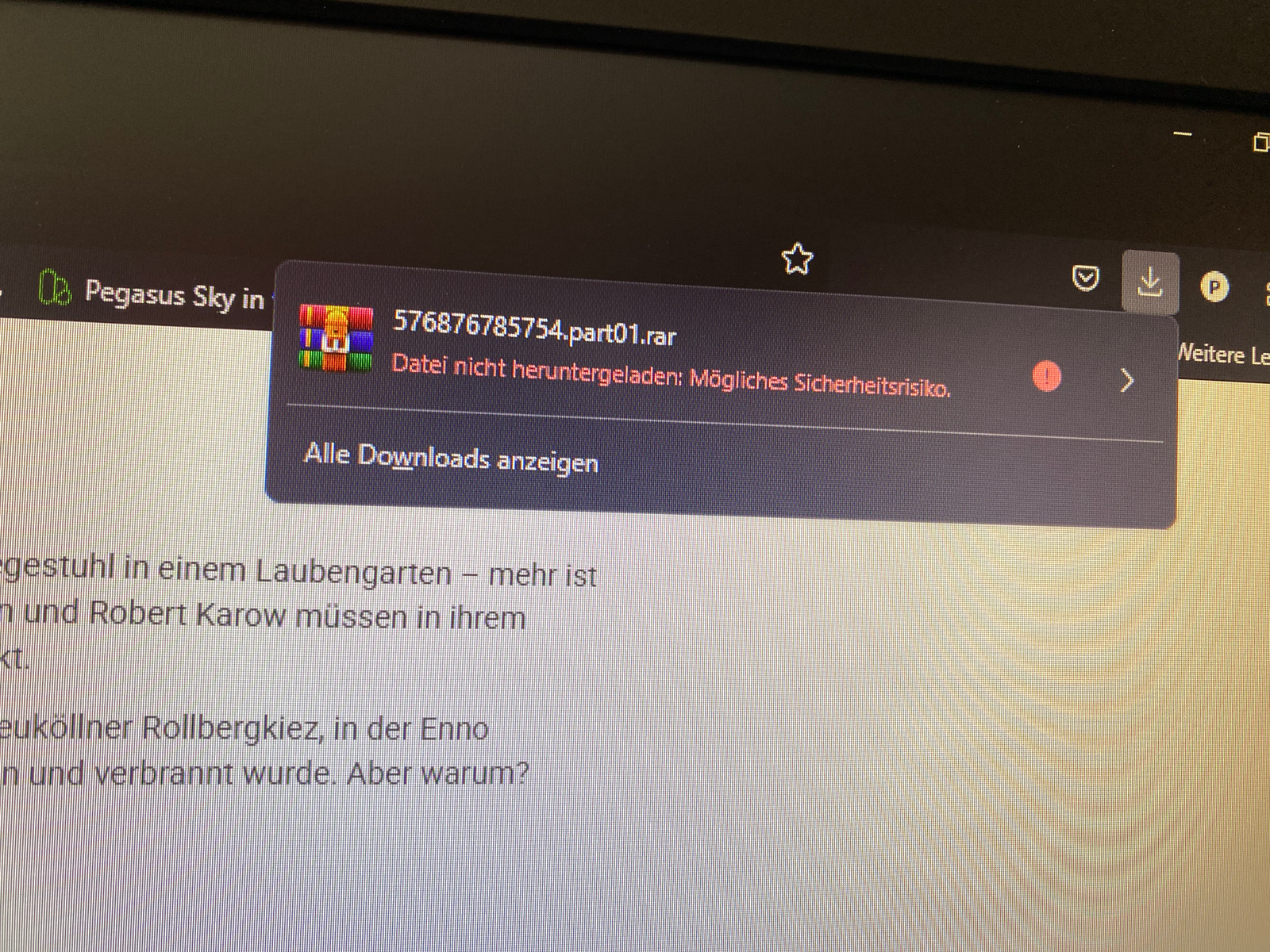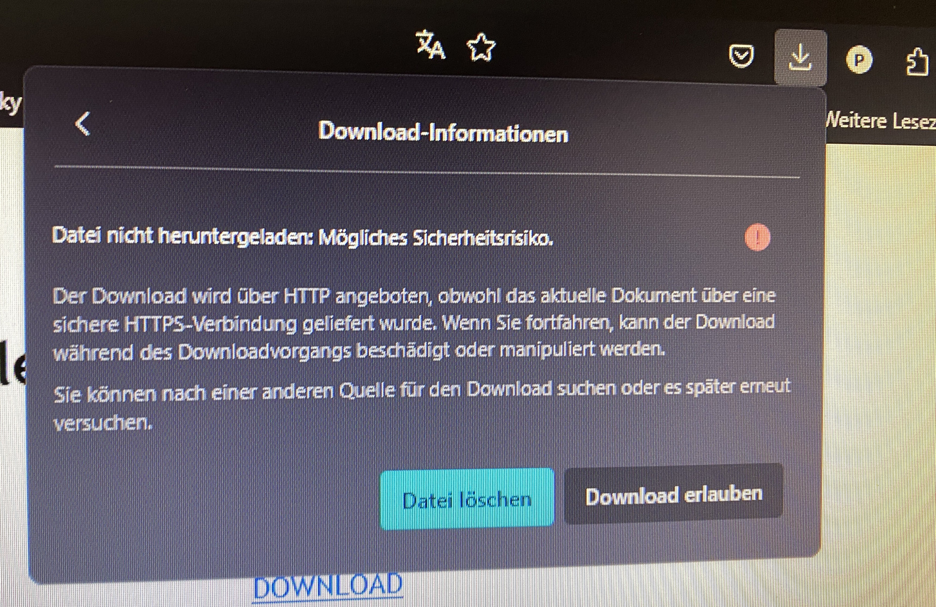 seit heute bekomme ich eine Mitteilung: Datei nicht herunterladen Mögliches Sicherheitsrisiko