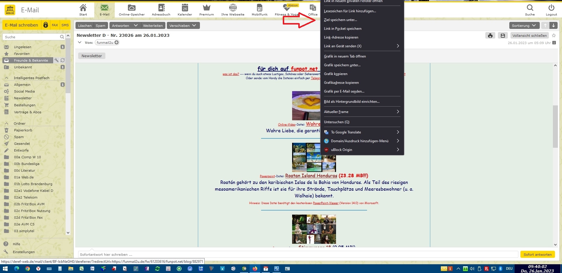 Wenn ich den Link direkt anklicke, öffnet sich wie immer das neue Fenster (Anhang), danach habe ich das direkt mit Rechtsklick auf den Desktop heruntergeladen und gespeichert. Und diese Funktion funktioniert nicht mehr.