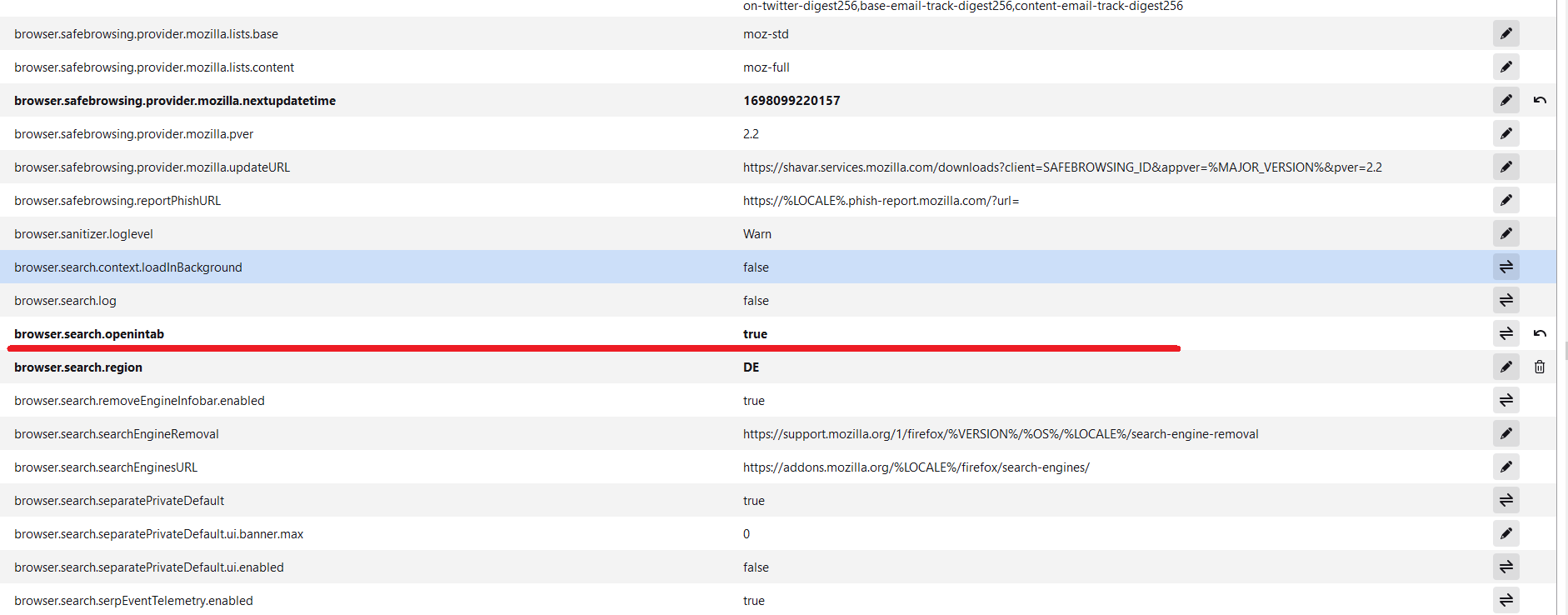 In den Einstellungen ist aber alles richtig about:config browser.search.openintab steht auf true. Trotzdem öffnet sich die Suche im letzten offenen Tab.