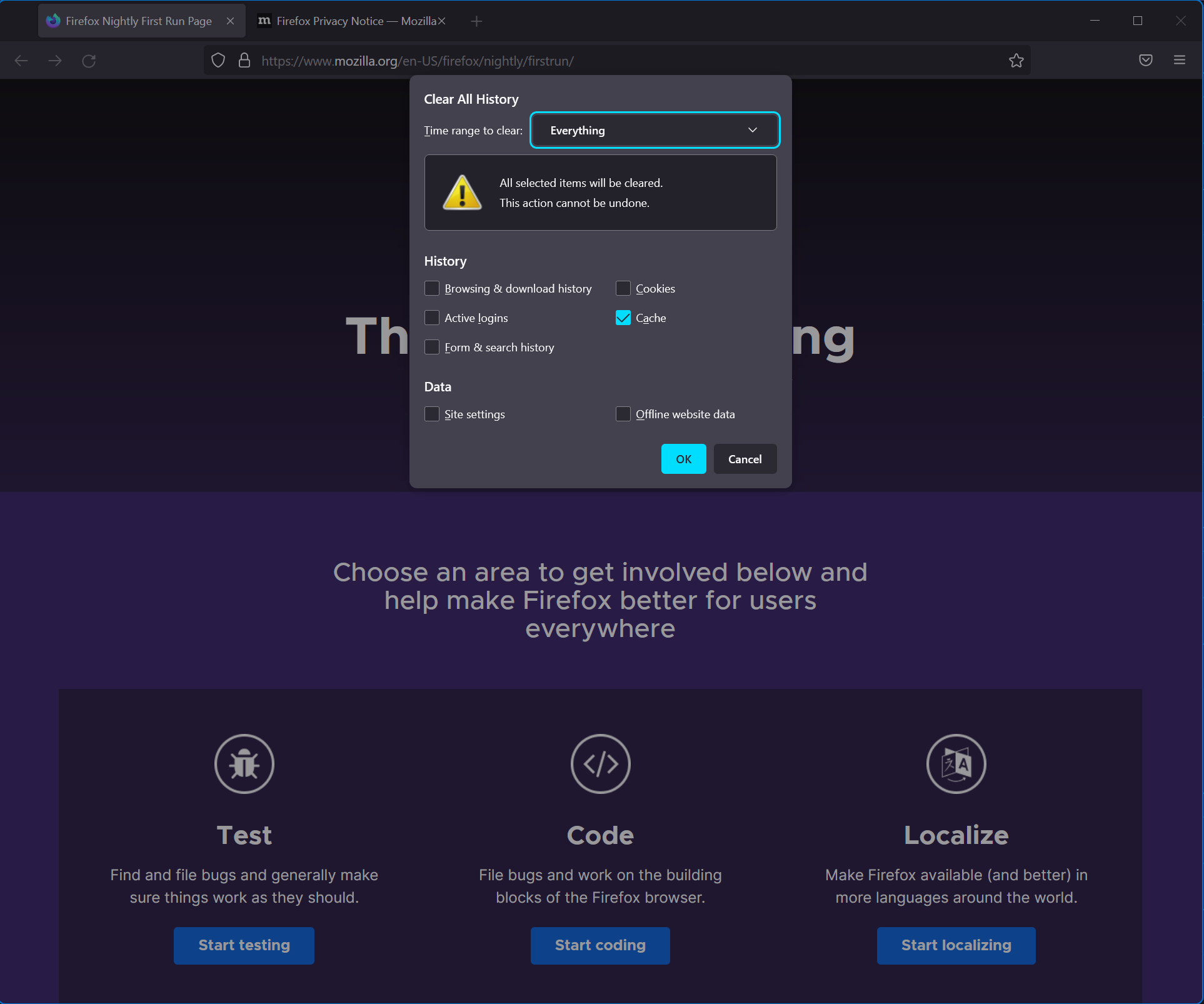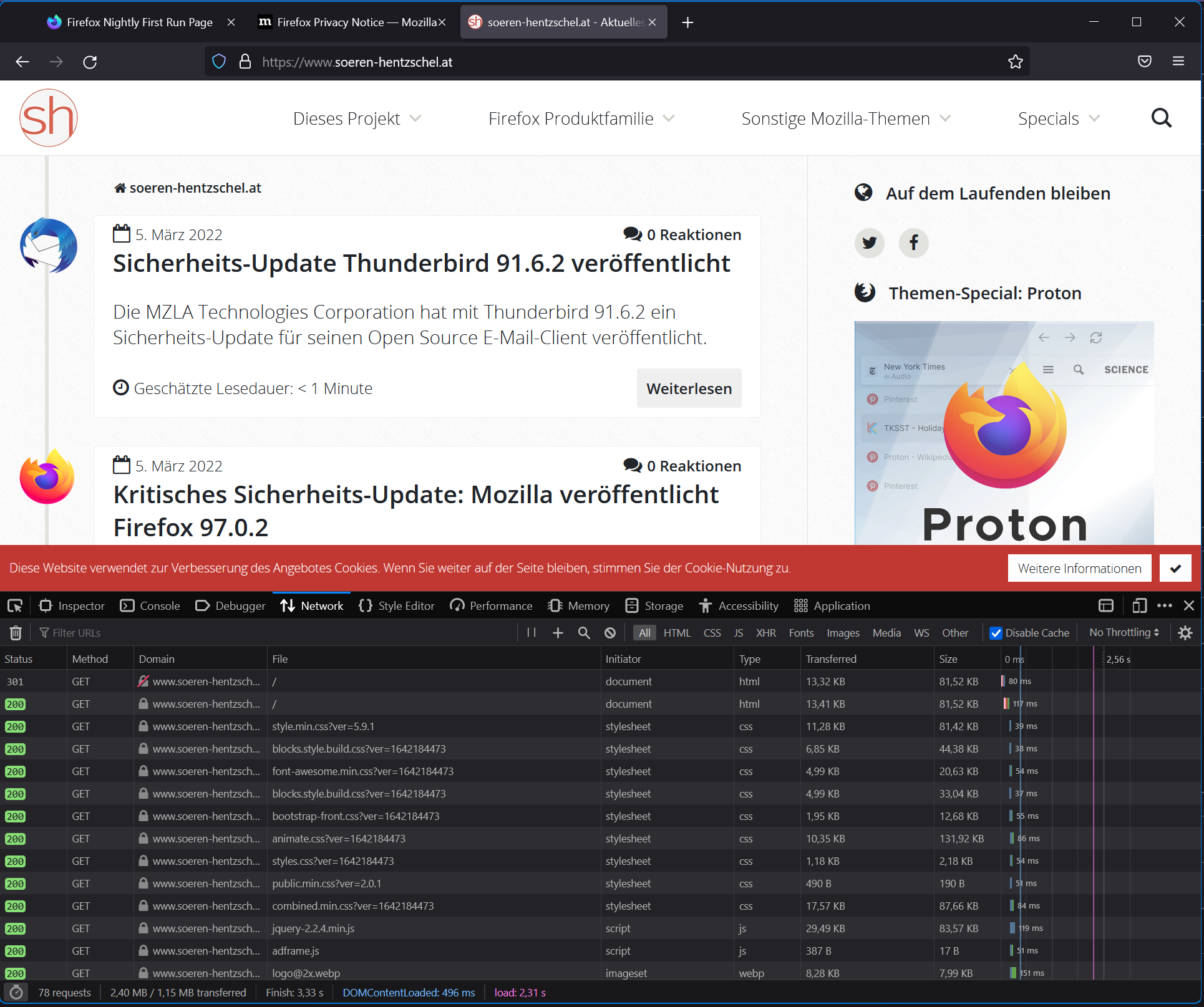 dlarah: Kannst du mal ein neues Profil erstellen (nutze dazu about:profiles und lade das mal parallel zu deinem eigentlichen Profil) und dort __nicht__ den privaten Modus aktivieren / nutzen, sondern im normalen Fenster die Seite versuchen aufzurufen?