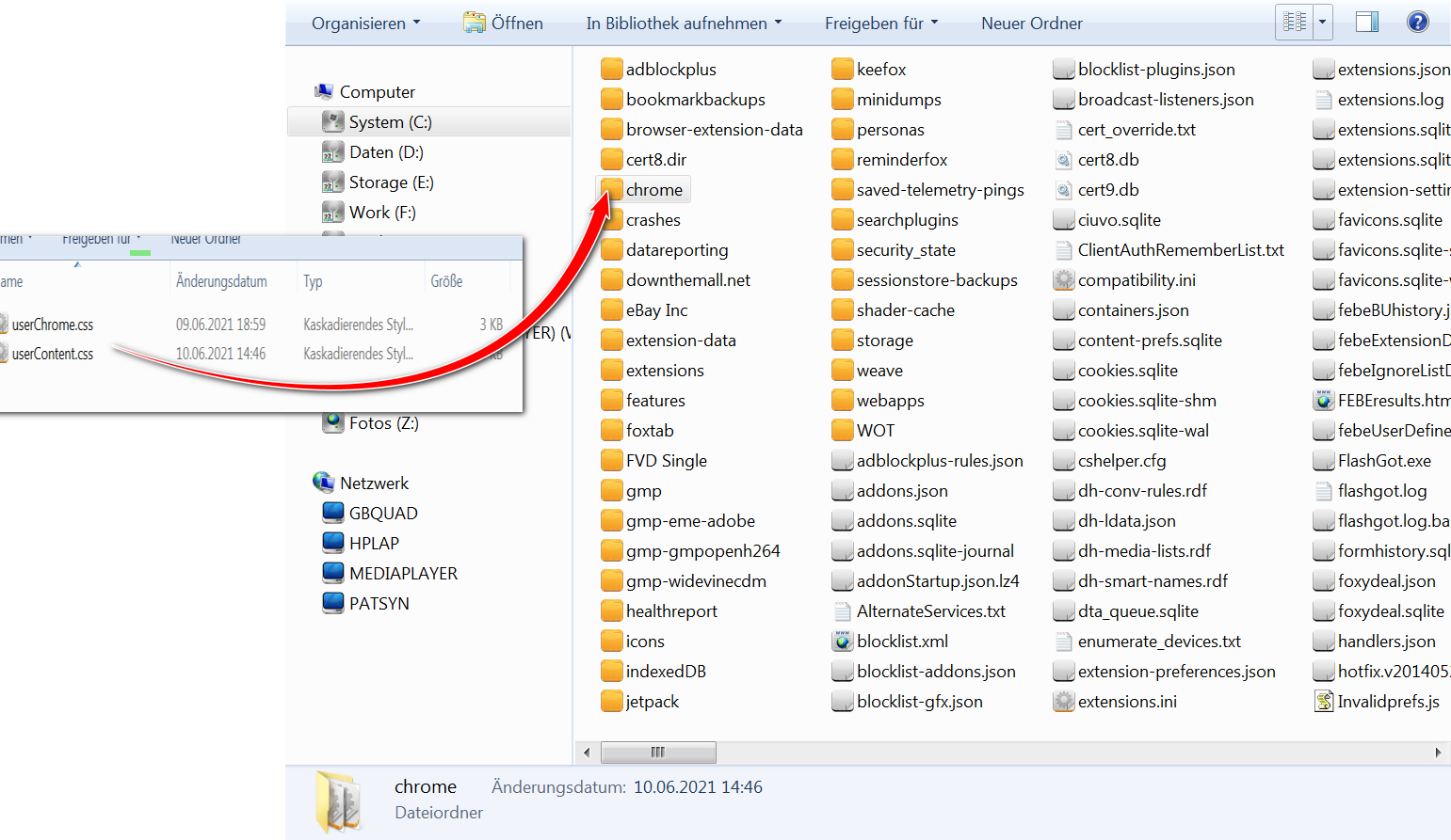Inhalt der userChrome.css ist ...