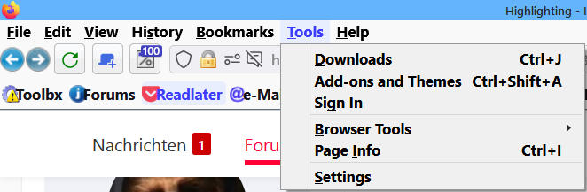 Hallo, ich versuche eine einheitliche 'Highlighting' zu bekommen und bin am Bookmarks Bar gescheitert. Für das Menu Bar