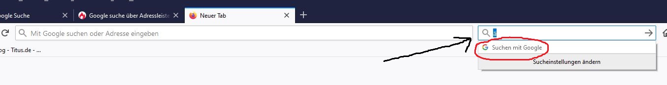 Ich habe die Suche mit Google 1x als Lesezeichen-Symbol in der Menü-Leiste.