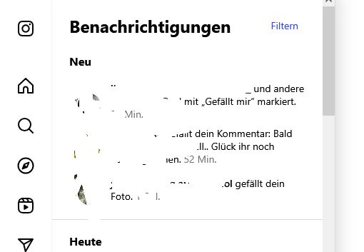wenn ich bei Instagram Benachrichtigung anklicken , zeigt nicht an zum Klick Fenster.
