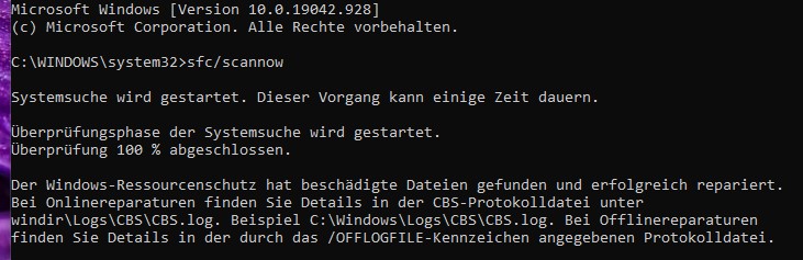 Ich habe jetzt einmal die sfc-Prozedur durchlaufen lassen. Dann PC-Neustart und sfc-Prozedur noch zweimal durchlaufen lassen, jedesmal war das Ergebnis. "Der Windows-Ressourcenschutz hat keine Integritätsverletzung gefunden.", also von der Seite her alles in Ordnung.