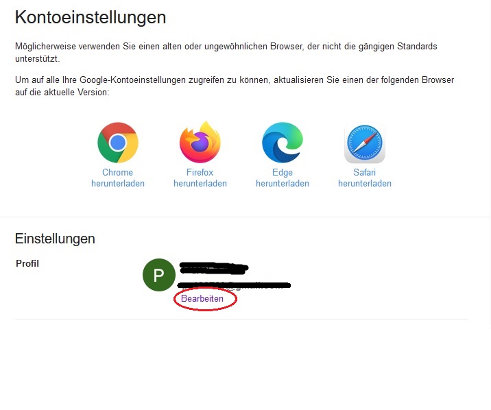 kann auf google.de mein Konto nicht bearbeiten. Bekomme folgende Fehlermeldung