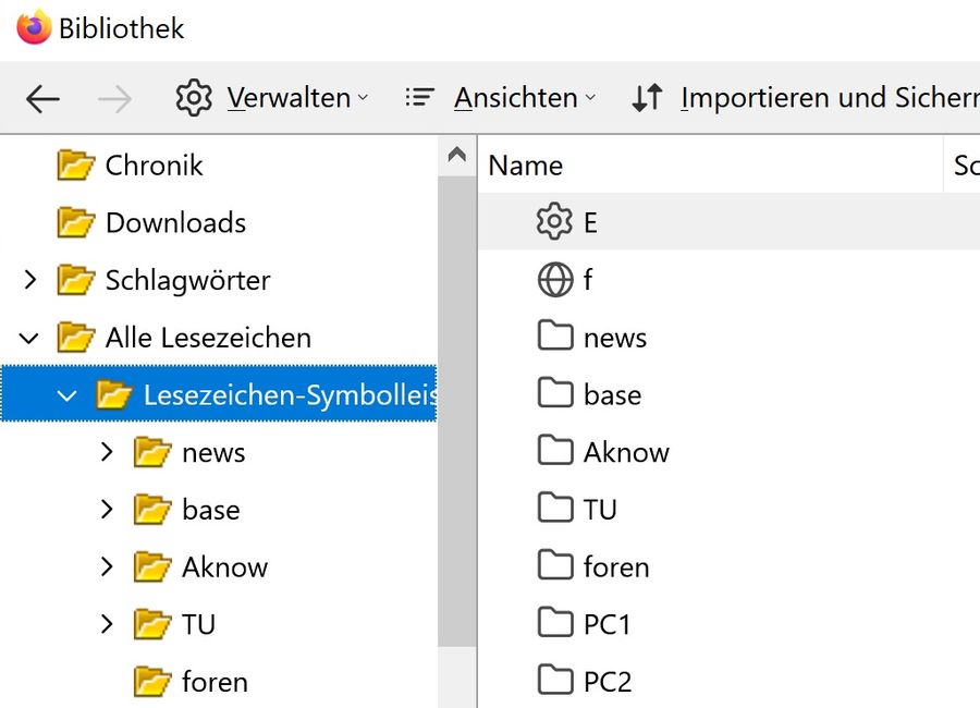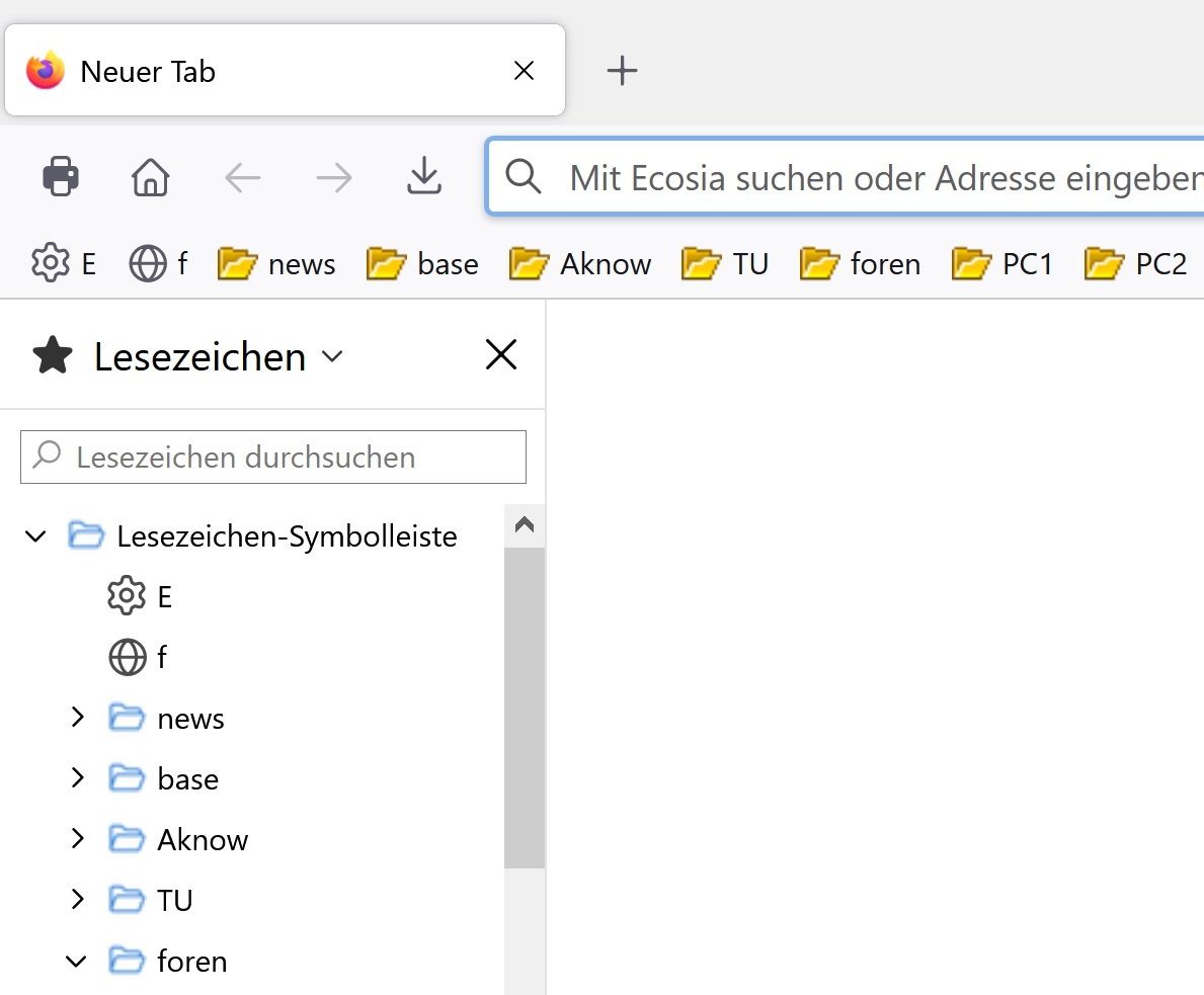 Eine Idee hatte ich schon: Vom alten PC die beiden sqlite -files eingespielt. Ich hatte deutlich mehr zugewiesene Favicons, was das Suchen viel übersichtlicher macht. Allerdings war der neue Ordner, wo ich Bookmarks, die ich auf neuem PC speichere, nicht mehr dabei. Denn kann ich aber auf alten PC kopieren, die paar Lesezeichen dort neu aktivieren und die beiden sqlite zurückspielen.