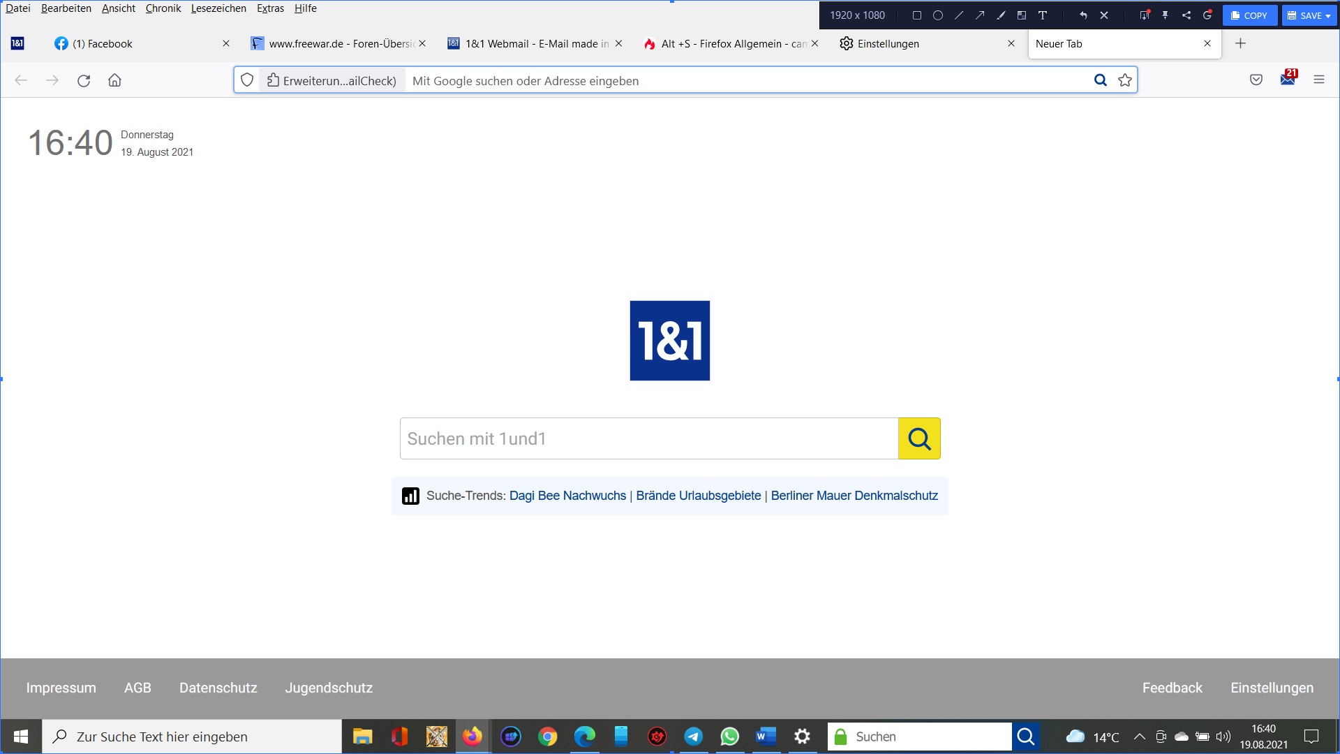 Versteh ich das dann richtig das 1und1 über das Original Firefox drüberinstalliert hat ?