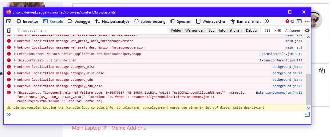 also: nachdem den ordner gelöscht habe und firefox neugestartet habe. jetzt wo ich browser-werkzeuge gestartet habe ist das gekommen..