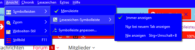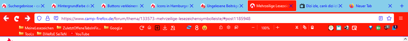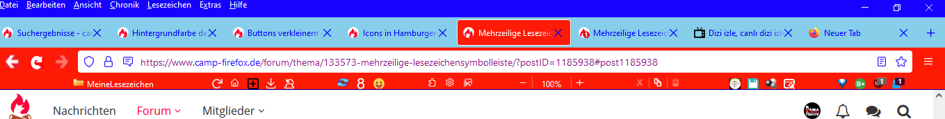 Alles anzeigen/* Mehrzeilige Lesezeichen-Symbolleiste */ @-moz-document url("chrome://browser/content/browser.xhtml") { #PersonalToolbar { min-height: calc(25px * 2) !important; /* damit werden 1 Reihen angezeigt */ } #personal-bookmarks, #PlacesToolbar, #PlacesToolbar > hbox { display: flex !important; } #PersonalToolbar toolbarbutton { min-height: 25px !important; max-height: 25px !important; } #PlacesToolbarItems { display: flex !important; flex-wrap: wrap !important; overflow-x: visible !important; overflow-y: auto !important; } #PlacesToolbarItems { -moz-window-dragging: no-drag !important; } #PlacesToolbar #PlacesChevron { display: none; } }habs auch so eingestellt, dass 2 Zeilen im Lesezeichen-Symbolleiste angezeigt werden, aber kann man in die 2.te Zeile erst Sachen hinschieben, wenn die 1.te Zeile voll ist?