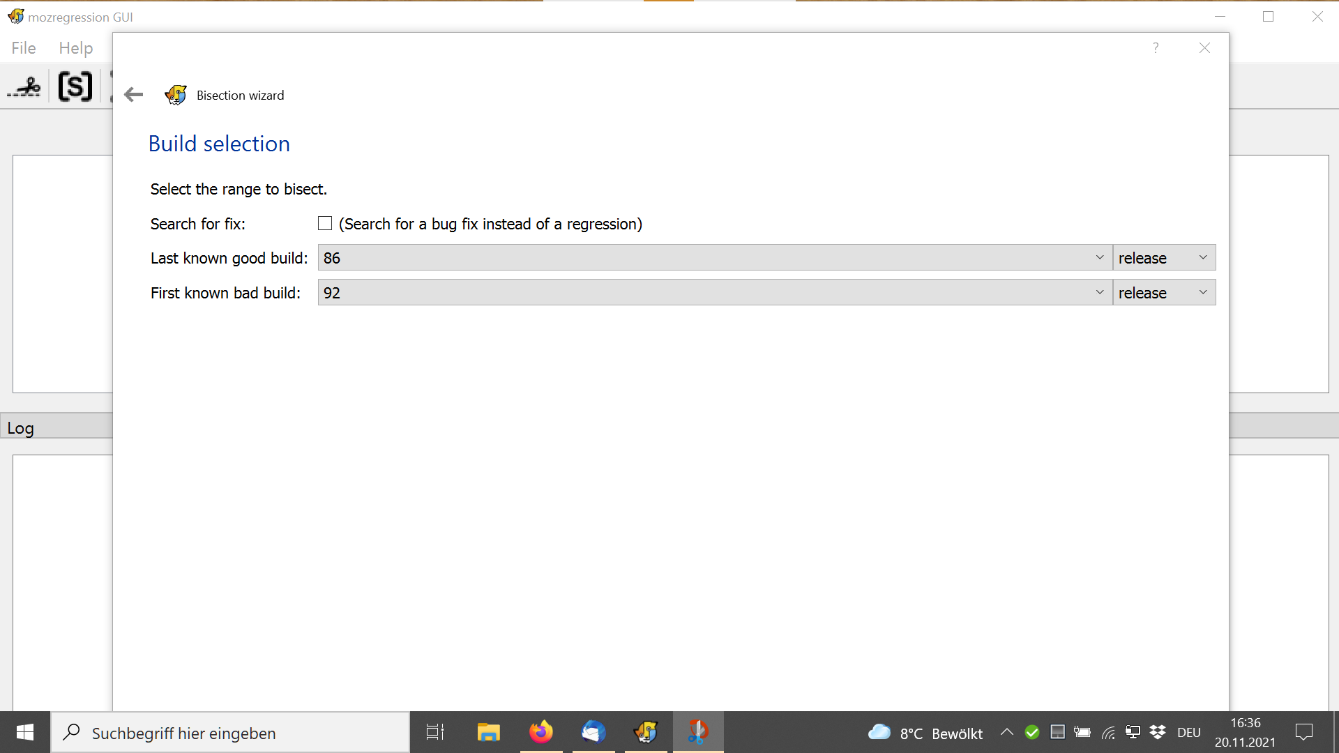 Werde als nächstes noch das von Mozregression ausprobieren.