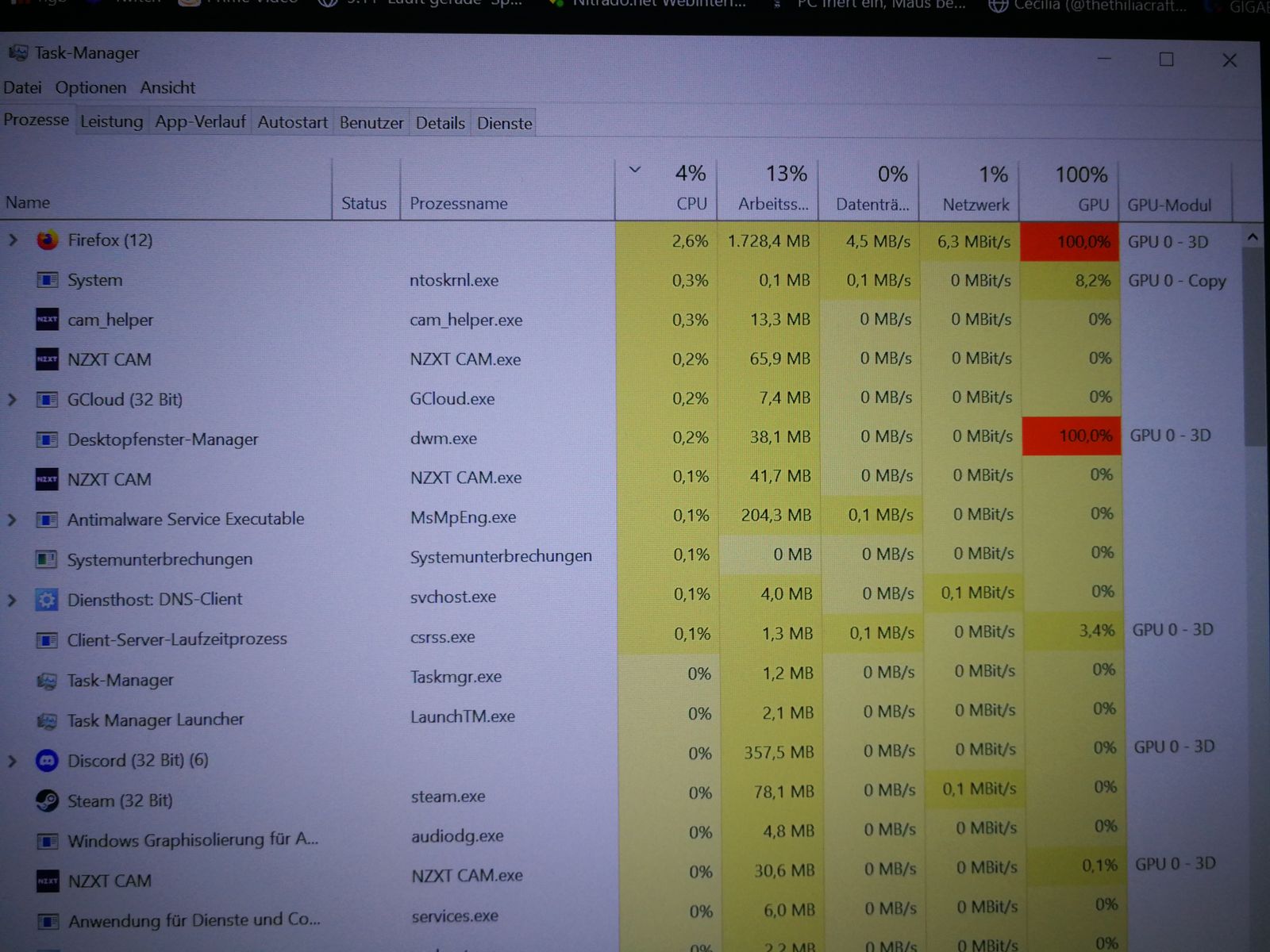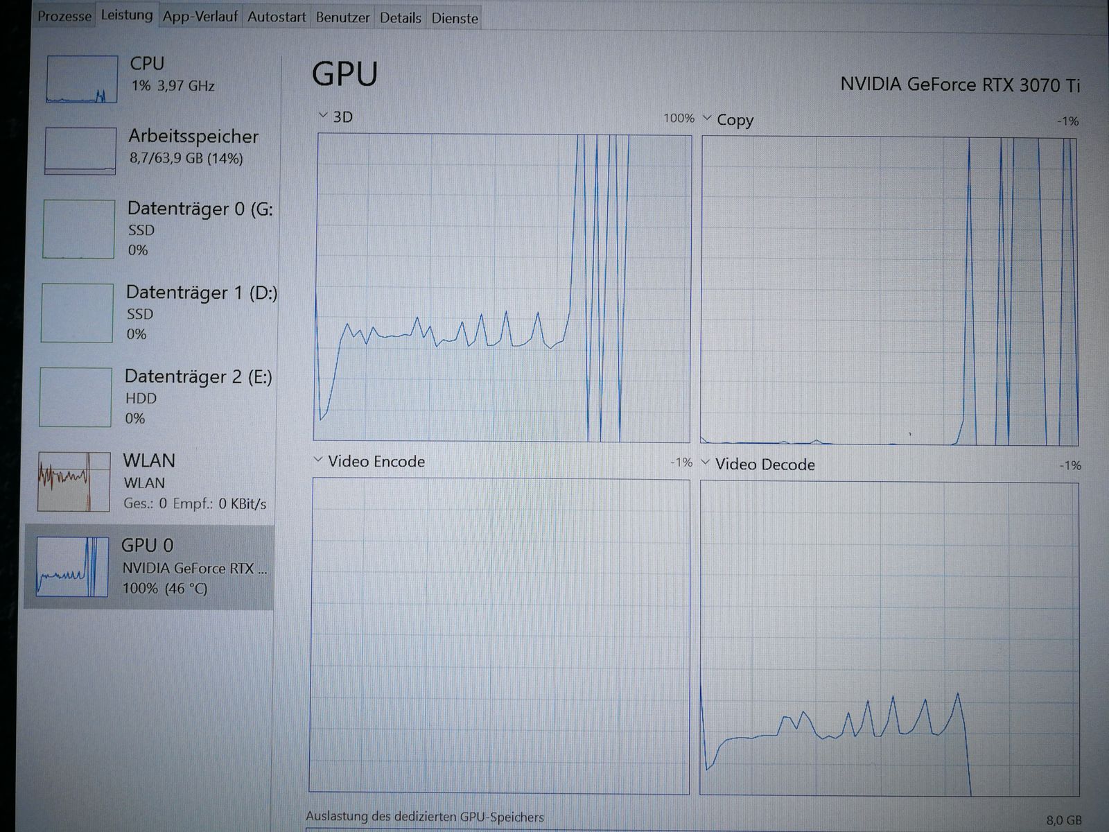 Abgesehen vom Windows Defender benutze ich kein anderes AntiViren Programm. Sonst läuft nur noch ein Programm, welches anzeigt, wie gerade die Temperaturen an meinem Rechner sind (von meiner Wasserkühlung). Irgendwelche Leistungsoptimierenden Tools habe ich nicht laufen.