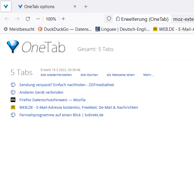 Der screenshot von OneTab war die Antwort für Boersenfeger. Da ich kein neues Profil erstellen möchte, habe ich Deine Antwort nicht verstanden und das mitgeteilt. Keine Ahnung, wie das mitten in meine Antwort an Boersenfeger kam.