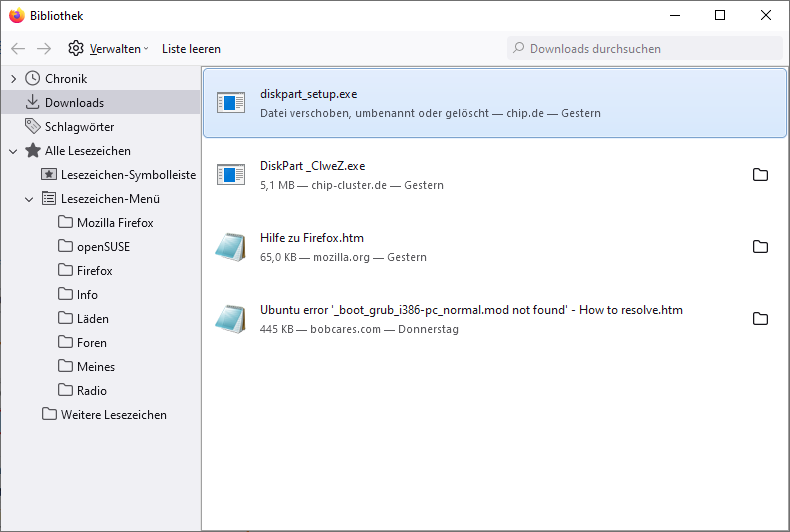 Nun sind meine Lesezeichen verschwunden.