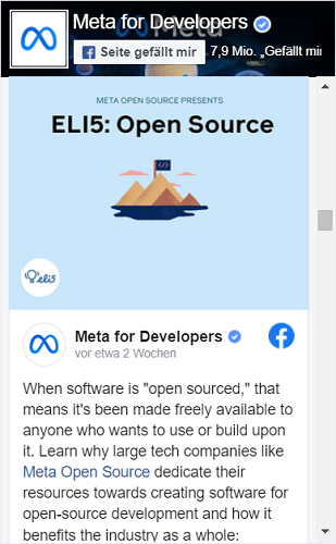 Und so sieht der Code auf meiner Website aus:Code<div class="fb-page" data-href="https://www.meine-seite.de" data-tabs="timeline" data-width="310" data-small-header="true" data-adapt-container-width="false" data-hide-cover="false" data-show-facepile="false"> <blockquote cite="https://www.meine-seite.de" class="fb-xfbml-parse-ignore"> <a href="https://www.meine-seite.de">Meine Seite</a></blockquote></div>Liebe Grüße