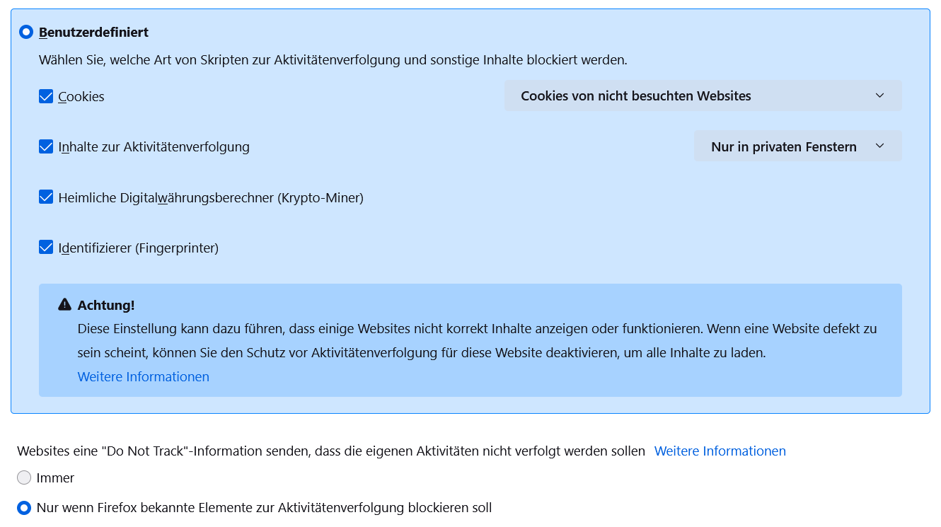 Meine aktuell benutzten Versionen sind übrigens Windows 10 und Firefox 95.0.2