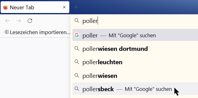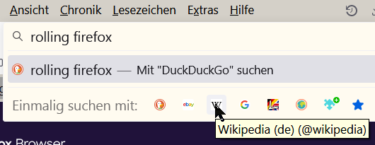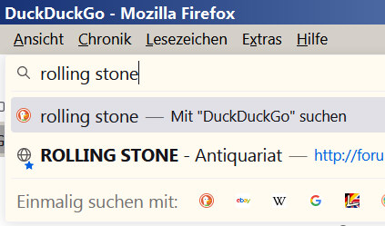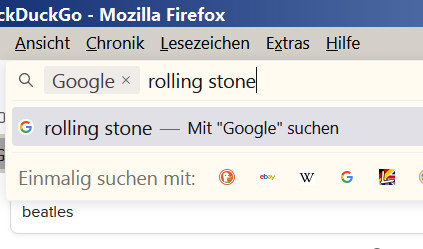 Mir fiel zur vorzüglichen FF-Suche dann noch ein: