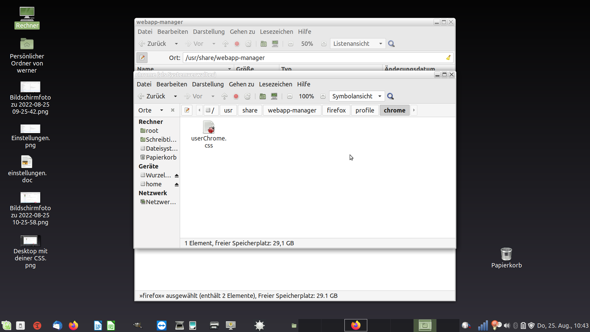 Der Ordner "Chrome" ist in den Profilordner gemäss "about:support" kopiert.