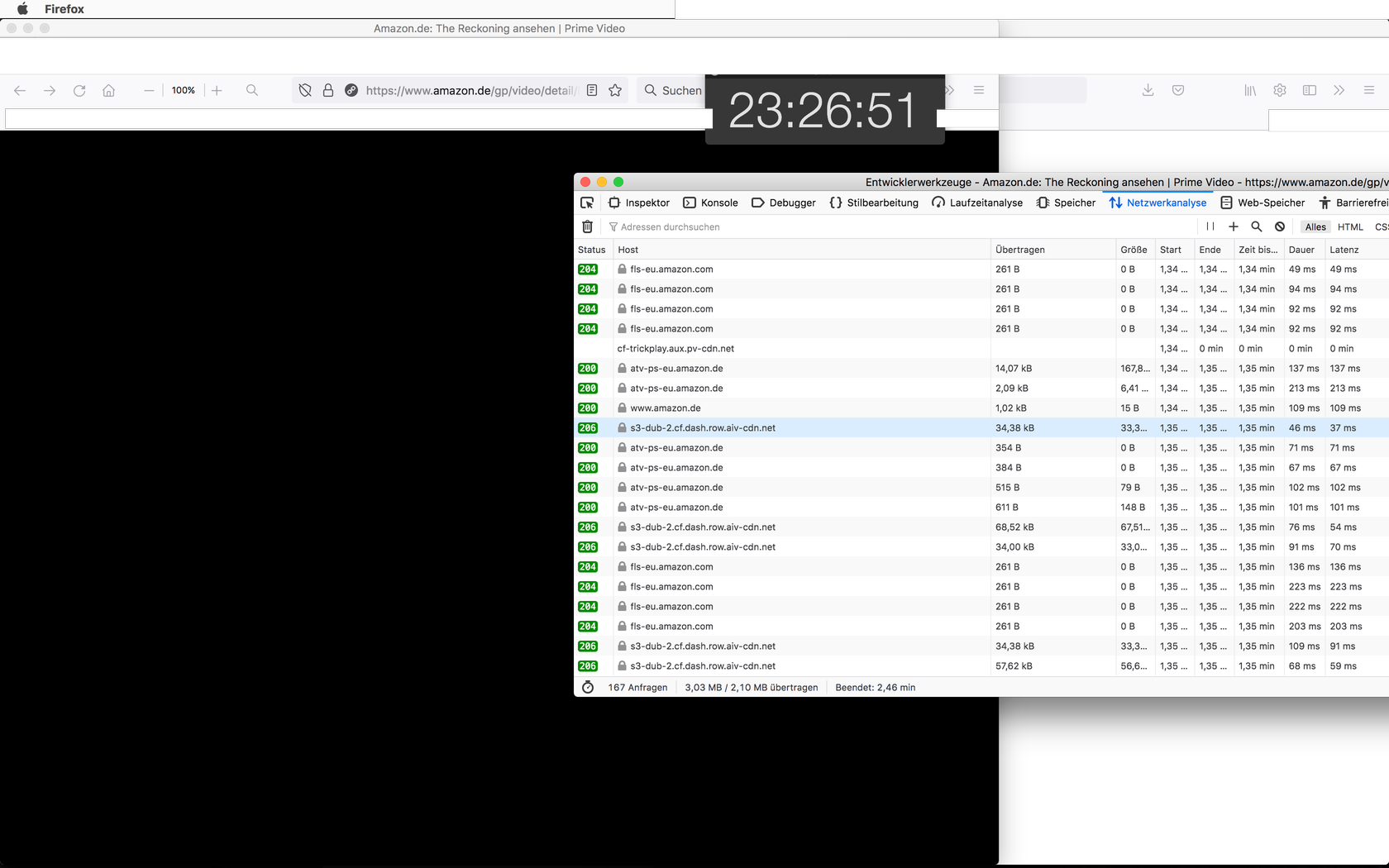 So von der Kombination 2+3 habe ich jetzt auch Logs, die habe ich nach bestem wissen und Gewissen zensiert, wenn ich was vergessen haben sollte gerne Bescheid sagen. Was mich wundert sind die ganzen "bloockiert Einträge". Der Stream hat erst lange geladen, dann kam die Meldung 7071 ich habe auf "weiter warten" geklickt und ab ungefähr 23:26:51 lief es dann schon (manhcmal braucht das aber auch noch deutlich länger als 15 sek)