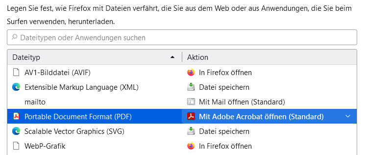 ich möchte Unternehmensweit im Firefox einstellen das wenn PDFs über Webseiten geöffnet werden, das automatisch der Acrobat Reader DC bzw der Standart PDF Viewer vom Betriebssystem geöffnet wird.