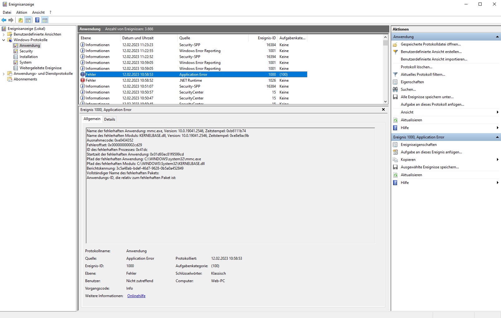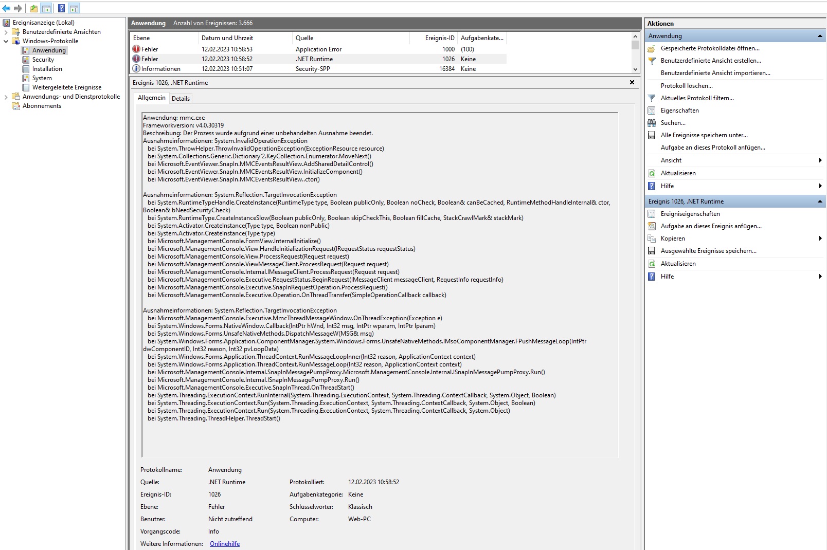 In der System Ereignisanzeige erscheint aber der Hinweis auf den Browser...