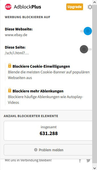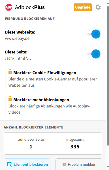 Es reicht wenn ich nur die untere Url nicht blockiere. https://www.ebay.de/sch/i.html? Das ist die Suchfunktion im Ebay.