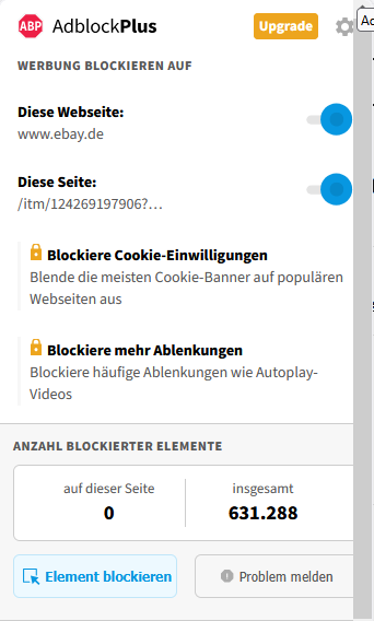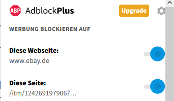 Ich habe mal diese Suchfunktion ausgeschaltet https://www.ebay.de/sch/i.html?...... Das ist ein Teil vom ABP-Filter und erscheint immer dann wenn man eine Suchanfrage in das Eingabefeld eingibt. Klickt man auf ein Item in der Liste, ändert sich die URL.