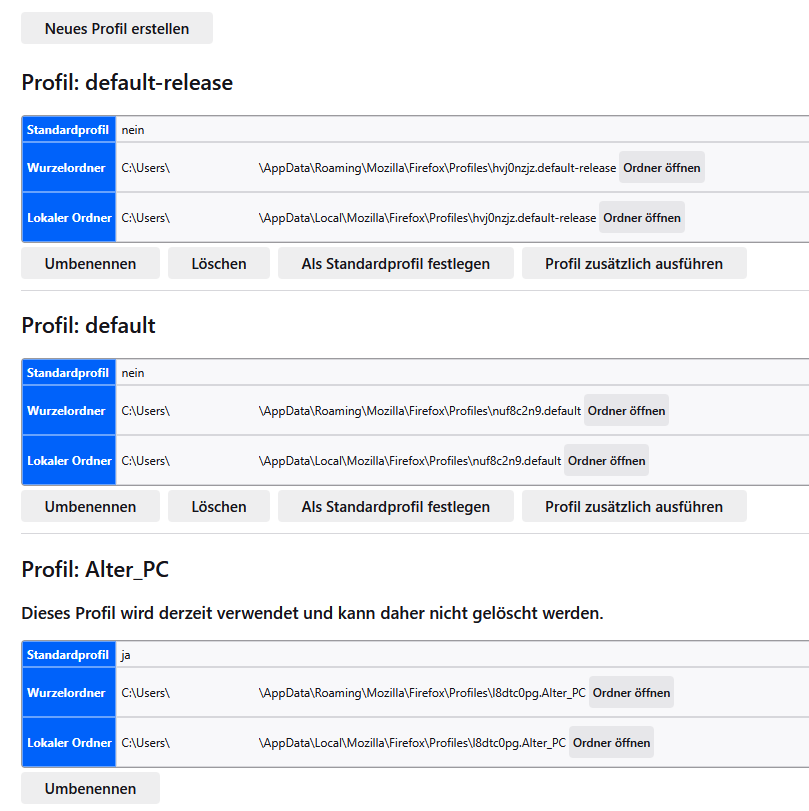 Ok, Alle Profiles sind im Roaming