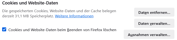 Standardmäßig lasse ich die Daten automatisch löschen, wenn ich Updates und ein reload des PC's mache.
