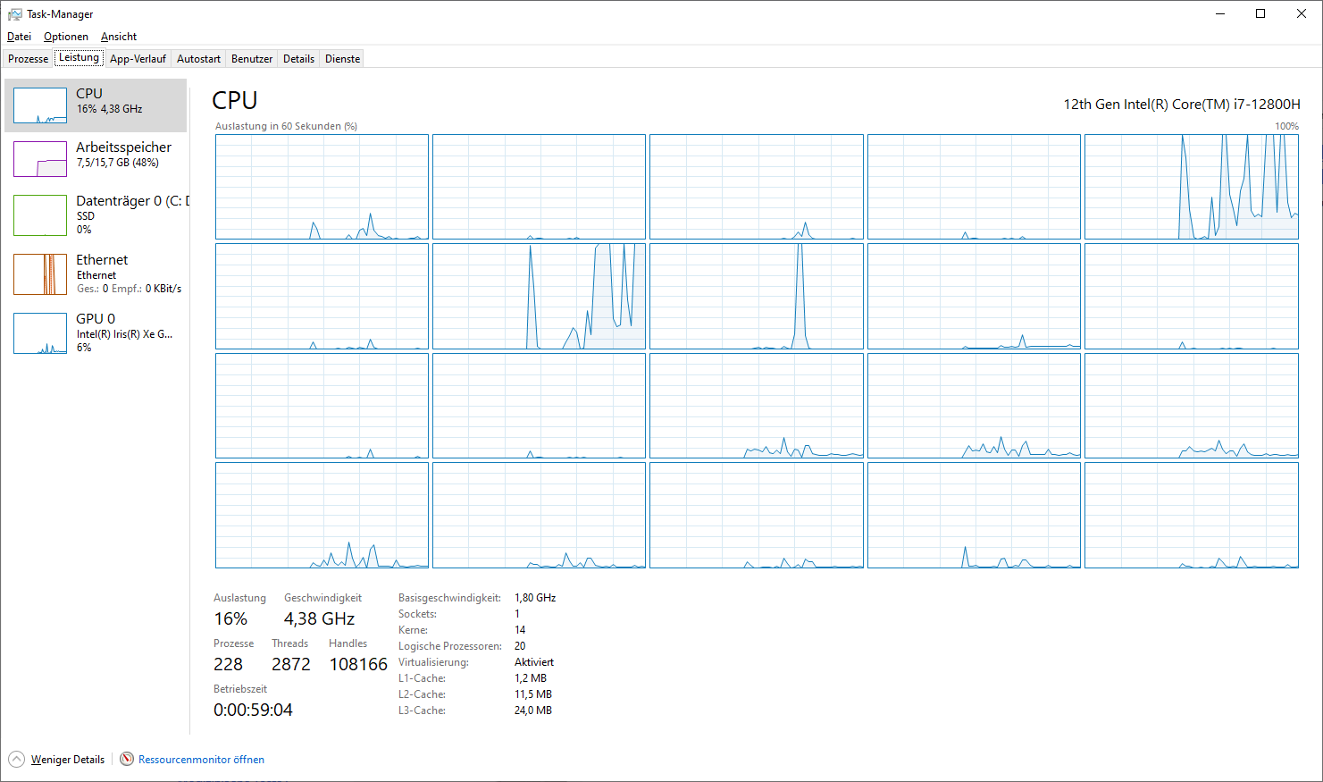 Prozessor 12th Gen Intel(R) Core(TM) i7-12800H, 1800 MHz, 14 Kern(e), 20 logische(r) Prozessor(en)