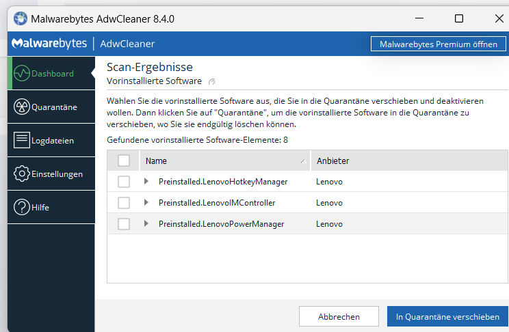 Danach bitte erneut Malwarebytes durchlaufen lassen und uns den Log geben