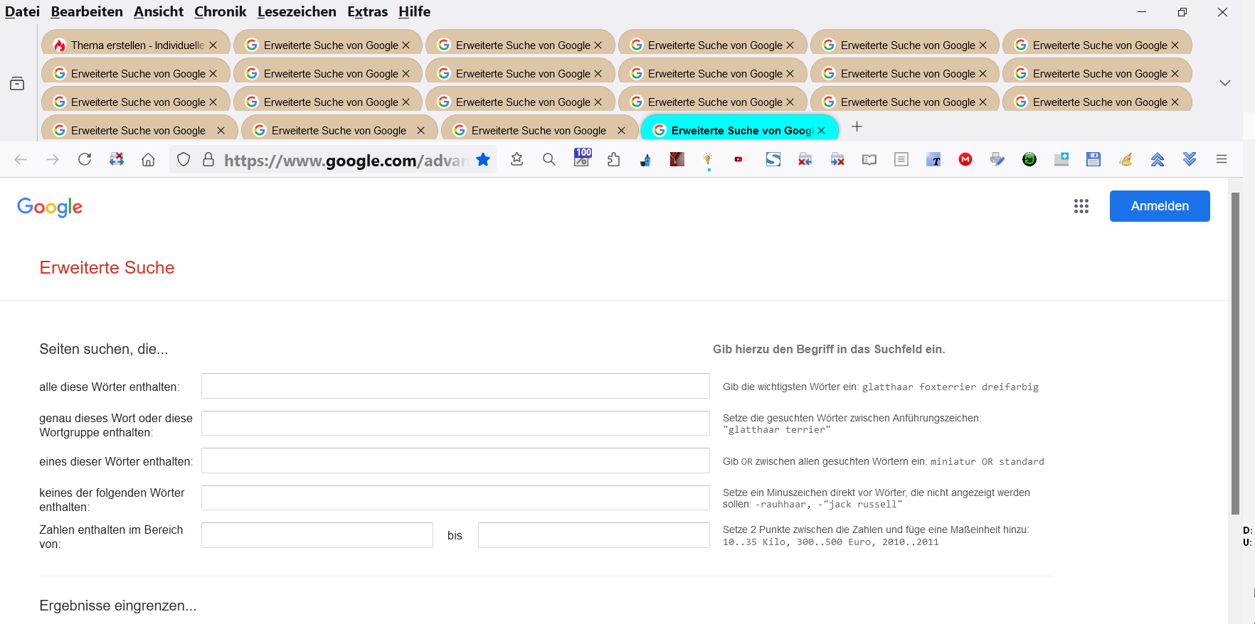 Alles anzeigen/* -------------------------------------------*/ /* Mehrzeilige Tabreihen (Abgerundete Ecken) */ /* -------------------------------------------*/ /* Tab-Höhe */ .tabbrowser-tab { min-height: 28px !important; max-height: 28px !important; vertical-align: top !important; margin-top: 1px !important; margin-bottom: 1px !important; } /* Feste Breite des einzelnem Tabs */ .tabbrowser-tab { min-width: 195px !important; /*max-width: 195px !important; M-I-T DIESER ZEILE GIBT ES L-Ü-C-K-E-N BEIM LÖSCHEN VON TABS - O-H-N-E DIESE ZEILE N-I-C-H-T */ } /* beliebig viele tabreihen */ /* 165 */ scrollbox { display: flex; flex-wrap: wrap; overflow-x: hidden; overflow y: auto; } /* -----------------------------*/ /* Tab: Optische Anpassungen */ /* -----------------------------*/ #tabbrowser-tabs { opacity: 1 !important; } /* Schriftart/Schriftgröße ändern */ .tabbrowser-tab .tab-label { font-weight: 500 !important; font-size: 12px !important; font-family: "Arial" !important; color: black !important; } .tabbrowser-tab .tab-label[selected] { color: black !important; font-weight: 600 !important; font-size: 12px !important; font-family: "arial" !important; font-style: "bold" !important; } /* Abgerundete Ecken */ #TabsToolbar .tabbrowser-tab .tab-background { background: rgba(221,198,168,1) !important; /* hellbraun */ margin-right : -1px !important; border-radius: 80px !important; border: 1px solid rgba(0,0,0,0.1) !important; } #TabsToolbar .tabbrowser-tab .tab-background[selected] { background: rgba(0,255,255,1) !important; /* */ /* */ margin-right : -1px !important; border-radius: 80px !important; border: 1px solid rgba(0,0,0,0.1) !important; } #TabsToolbar .tabbrowser-tab[selected] { margin-right : -1px !important; border-radius: 80px !important; border: 1px solid rgba(0,0,0,0.1) !important; }
