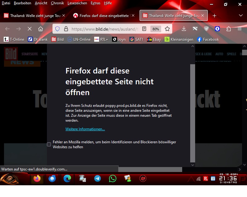 beim Lesen von Artikel z.B. in der Bild Zeitung, kommt beim Aufrufen des Artikels diese Meldung: