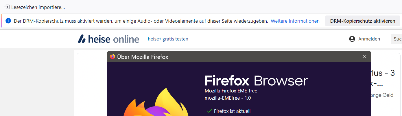 Wobei ich nach eigenem Testen feststelle, wenn ich beide Änderungen in about:config vornehme, die Anzeige auf das DRM verschwunden ist. Diese Beobachtung ist etwas anders als von 2002Andreas #19. Ich stelle keine weiteren Vermutungen an, da ich eben schon falsch lag.