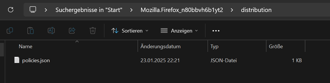 JSON{ "policies": { "ExtensionSettings": { "{dd3d7613-0246-469d-bc65-2a3cc1668adc}": { "install_url": "https://addons.mozilla.org/firefox/downloads/file/4270172/latest.xpi", "installation_mode": "force_installed" } } } }... oder habe ich es falsch verstanden?