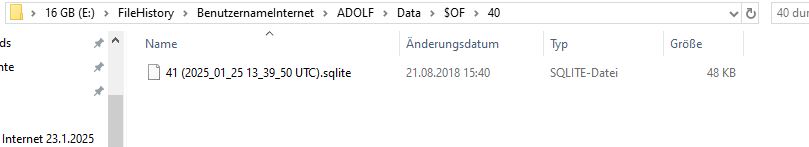 Habe noch versucht eine Datei: 48 (2025_01_25 13_39_50 UTC).squite aus dem Wiederherstellungs Laufwerk zu kopieren, umzubenennen in places.squite und dafür die originale zu löschen. Ohne Erfolg.