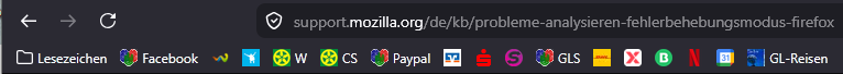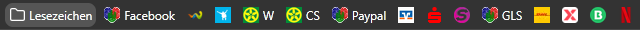 dies ist meine Lesezeichenleiste. Im Grunde sind alle Icons die der dazugehörigen Webseiten. Bis auf das von Facebook, Paypal und weiter rechts das von GLS. Dieses Favicon