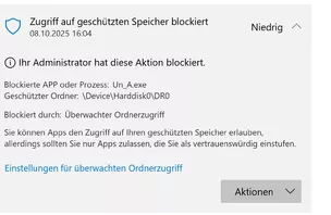 bzw. von einem Virenprogramm blockiert