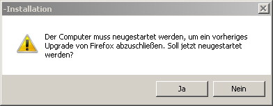 Der Computer muß neu gestartet werden, um ein vorheriges Upgrade von Firefox abzuschließen. Soll jetzt neu gestartet werden? - JA - NEIN