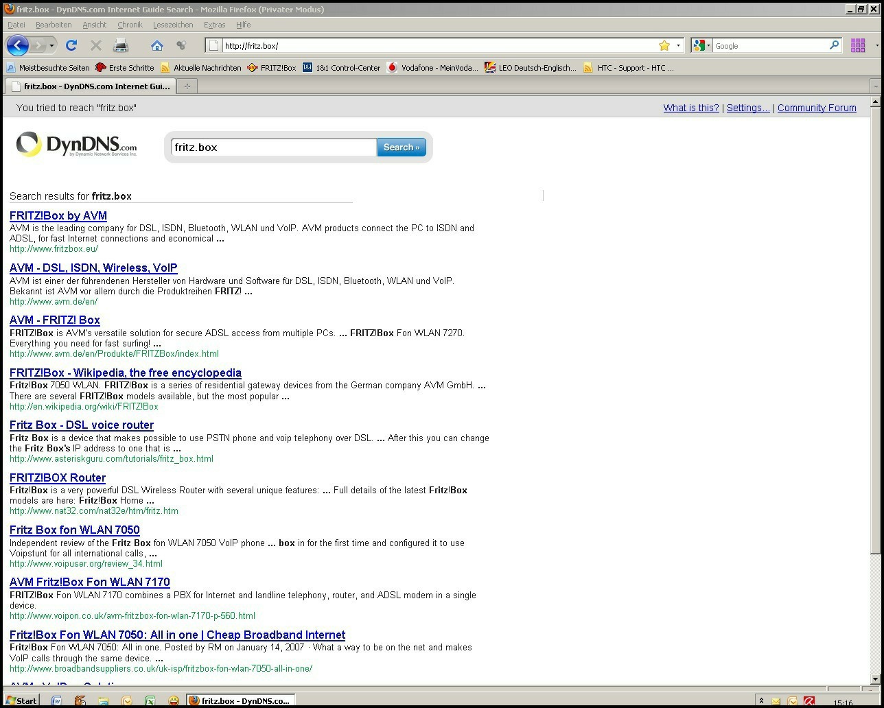 ich habe seitdem ich mir einen FTP_Server installiert habe oft bei Eingabe eines Suchbegriffes im Adressfeld die SEite: dyndns.com als "Suchseite".... statt Google.... siehe auch angehängten ScreenshotAuch wenn ich auf meine Fritzbox mit fritz.box gehen will, erscheint die Seite.