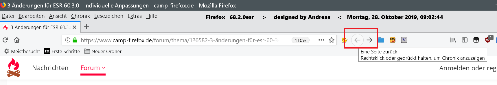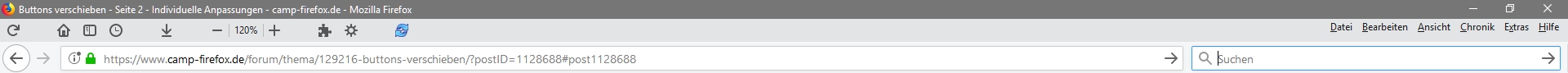 weil ich wohl der größte Vollpfosten bin und manchmal den Überblick verliere. Denn wegen der vielen Testerei habe ich den falsche Code gelöscht und auch noch die falsche userChrome.css abgespeichert. Sonst mache ich echt wegen jeder Kleinigkeit eine Kopie.